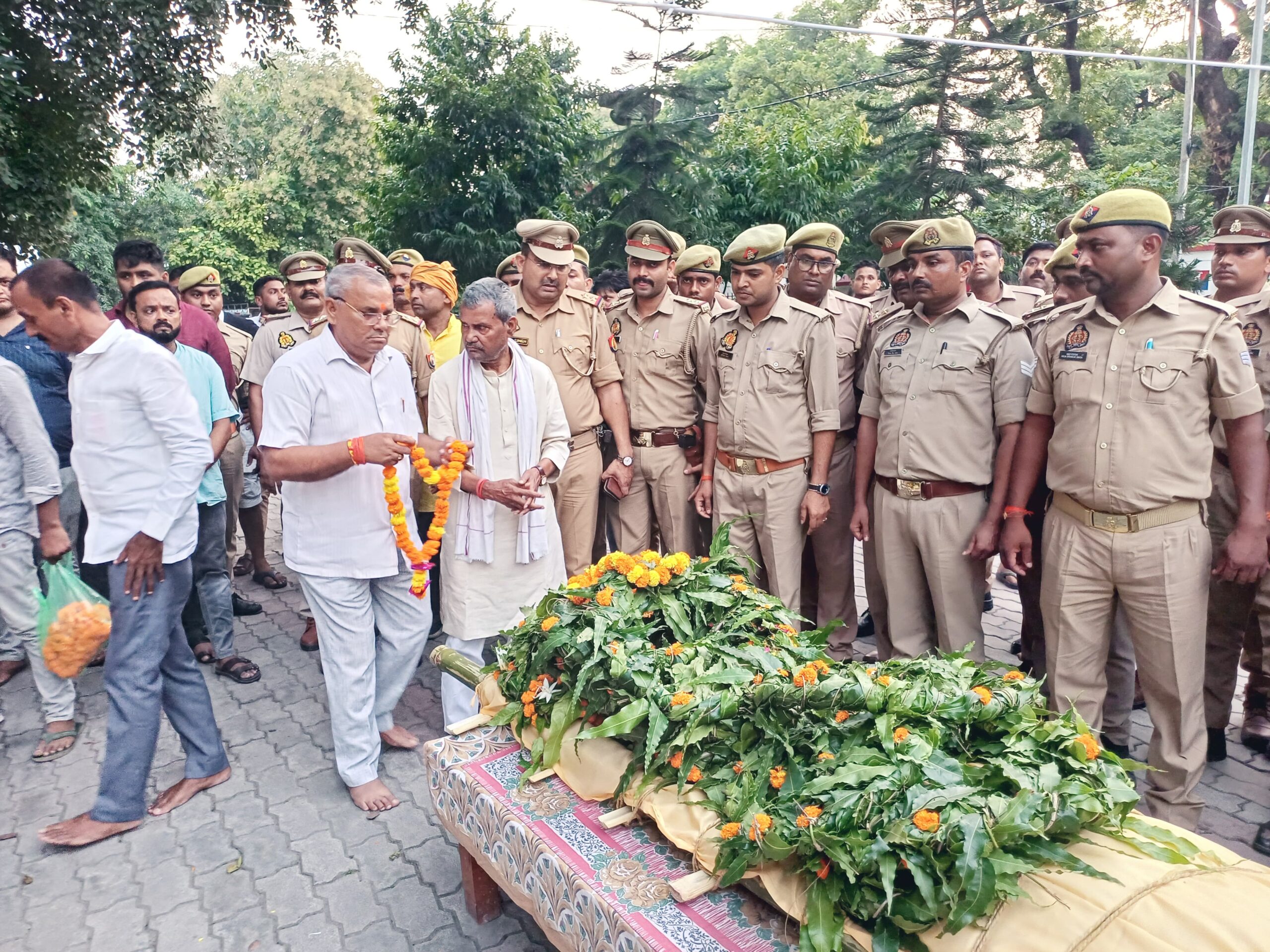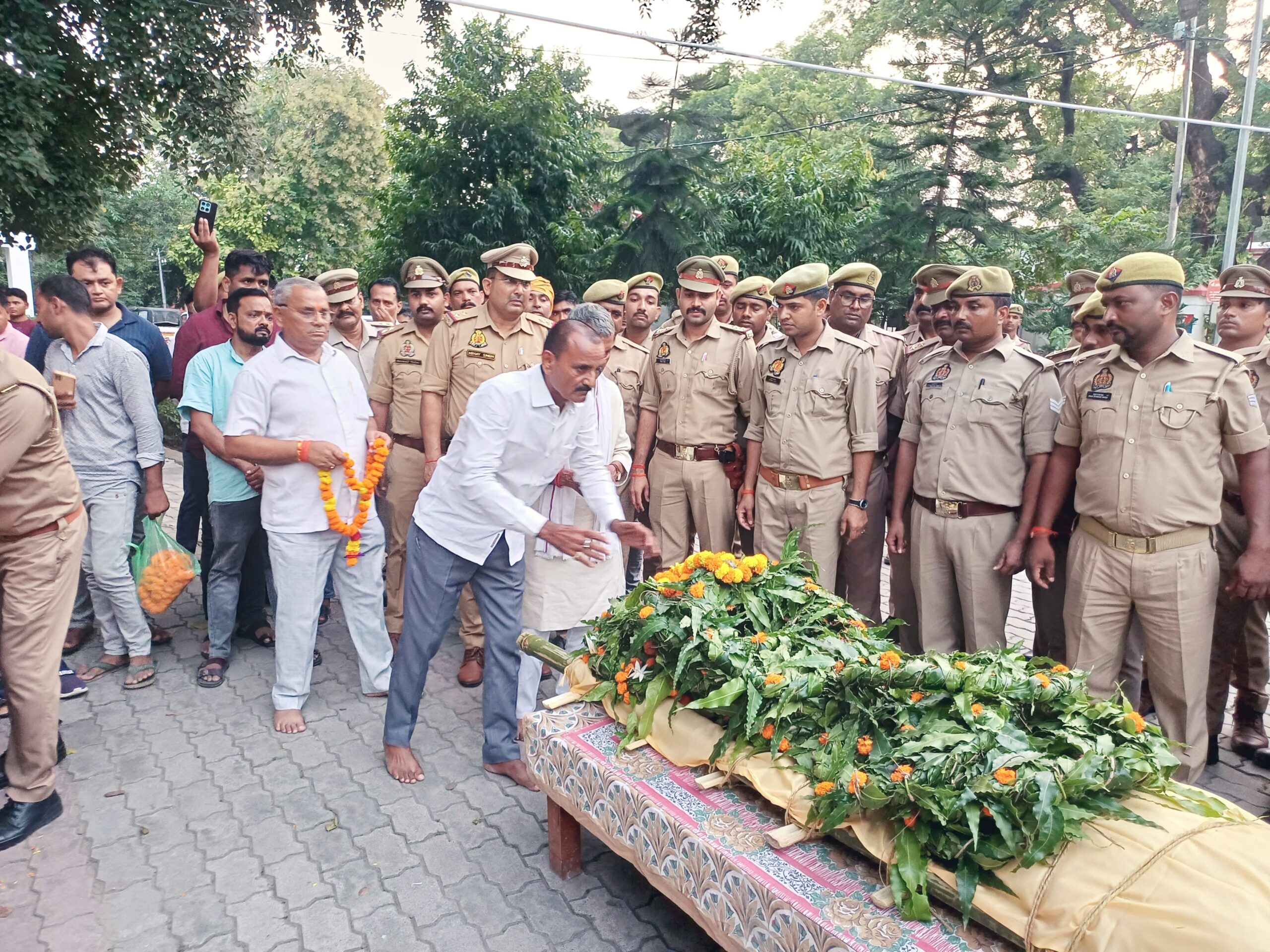 जैसे ही मृतक मुख्य आरक्षी का शव नवाबगंज थाना परिसर पहुँचा, पूरा माहौल गमगीन हो गया। हर आँख नम थी।