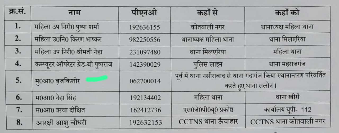 जानकारी के अनुसार मुख्य आरक्षी बृज किशोर का तबादला पहले नसीराबाद से गदागंज थाने के लिए किया गया था। बाद में 14 अक्टूबर को संशोधित आदेश में उनका तबादला निरस्त कर उन्हें कोतवाली सलोंन में तैनात करने का निर्देश जारी हुआ। सामान्य परिस्थितियों में तबादले के बाद संबंधित कर्मी को नई तैनाती स्थल पर रिपोर्ट करना अनिवार्य होता है, लेकिन यहां मामला इसके विपरीत नजर आ रहा है।
